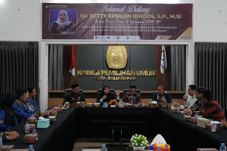 Komisi Pemilihan Umum (KPU) Kota Balikpapan mendapat kunjungan kehormatan dari Anggota KPU Republik Indonesia (KPU RI), Ibu Betty Epsilon Idroos, dalam rangka melakukan Monitoring Pelaksanaan Pemutakhiran Data Pemilih Berkelanjutan (PDPB) di Lingkungan KPU Kota Balikpapan. Kegiatan penting ini dilaksanakan di Kantor KPU Kota Balikpapan pada hari Senin, 10 November 2025. Kunjungan ini disambut hangat oleh seluruh jajaran KPU di Kalimantan Timur, termasuk Anggota KPU Provinsi Kalimantan Timur, Ketua dan Anggota KPU Kota Balikpapan, Sekretaris KPU Provinsi Kalimantan Timur, Sekretaris KPU Kota Balikpapan, serta seluruh staf sekretariat KPU Provinsi Kalimantan Timur dan KPU Kota Balikpapan. Pada kesempatan ini, Ibu Betty Epsilon Idroos, Kepala Divisi Data dan Informasi KPU RI, menyampaikan paparan historis yang mendalam mengenai Sistem Informasi Pemutakhiran Data Pemilih (SIDALIH), mulai dari sejarah perkembangannya sejak awal pelaksanaan pemilu hingga menjadi aplikasi utama saat ini. Beliau menekankan bahwa SIDALIH telah mengalami evolusi yang panjang hingga menjadi alat bantu pemutakhiran data pemilih yang kokoh dan berbasis hukum. Selain memberikan materi, beliau juga secara langsung memantau progres Pemutakhiran Data Pemilih Berkelanjutan Triwulan IV yang sedang berjalan di Kota Balikpapan, menanyakan kendala teknis dan administratif yang dihadapi, serta memberikan solusi dan arahan strategis untuk mendukung kelancaran dan akurasi pelaksanaan PDPB di Kota Balikpapan. ....